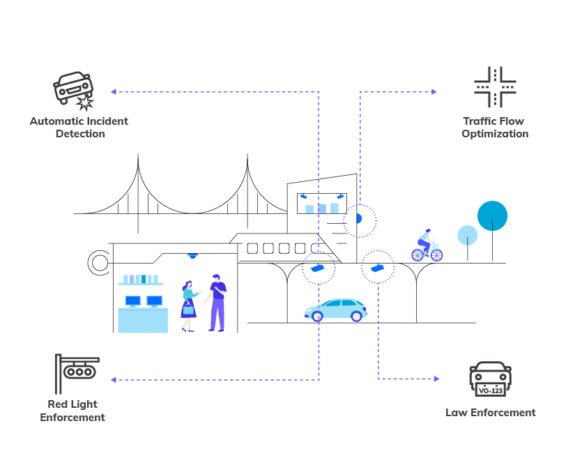 Los accidentes, las horas pico y el estacionamiento ilegal son las principales causas de las congestiones de tráfico. En la carretera, los incidentes de tránsito graves o el cobro de peajes por operación tripulada con frecuencia resultan en kilómetros de atascos de tránsito. En el área urbana, los tremendos flujos de tráfico suelen provocar turbulencias en los cruces. Mientras tanto, los recursos laborales masivos asignados para manejar los problemas de tráfico también son ineficientes. Por lo tanto, el monitoreo en vivo, la alarma en tiempo real y la grabación forense son fundamentales para que las agencias de gestión del tráfico eliminen, o incluso más, disuadan los problemas de tráfico lo antes posible.