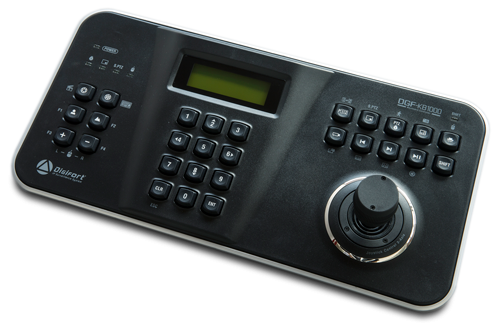 La mesa controladora Digifort DGF-KB1000 fue desarrollada exclusivamente para el Sistema Digifort, lo que le otorga mayor rapidez y facilita toda la operación, y hace posible eliminar el teclado, el mouse y el joystick. El teclado es multiuso; tiene funciones dobles y posee un joystick y un jog dial integrado de velocidad variable, de rotación vertical, horizontal y funciones de PTZ. Sin embargo, las funciones PTZ funcionan solo en equipos que soporten un Joystick por PTZ. Verifique en el enlace Equipos Integrados la compatibilidad con su equipo.