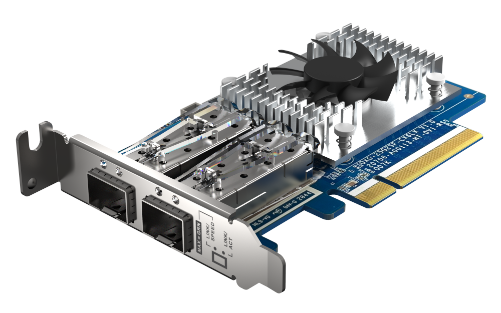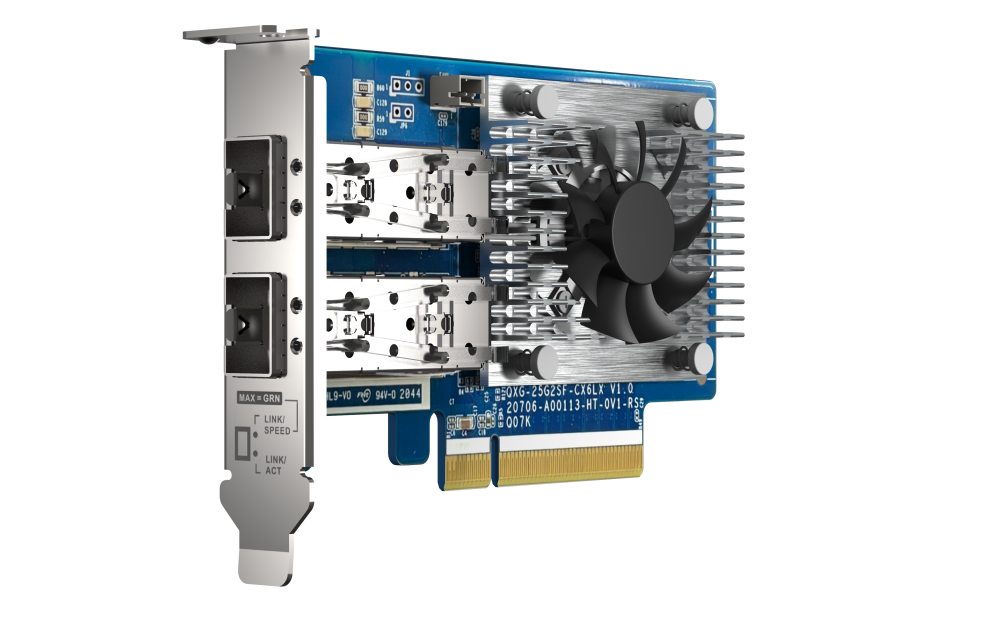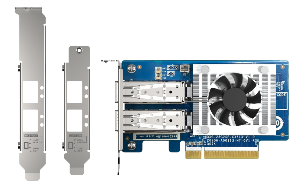 La QXG-25G2SF-CX6 incluye un controlador SmartNIC NVIDIA Mellanox® ConnectX®-6 Lx, admite PCIe Gen4 (compatible con Gen3/ Gen2) y ofrece unas velocidades de transferencia de hasta 25 Gbps. (admite 10/25Gbps) Al usar el Enlace troncal de puertos (Port Trunking) para combinar múltiples puertos, se puede alcanzar una conectividad de hasta 50GbE para acelerar el uso compartido de archivos y la transferencia de datos intensiva. Gracias a la compatibilidad con SR-IOV, la QXG-25G2SF-CX6 mejora considerablemente la eficiencia de la red y resulta ideal para centros de datos y aplicaciones de virtualización con un uso intensivo de E/S y sensibles a la latencia.