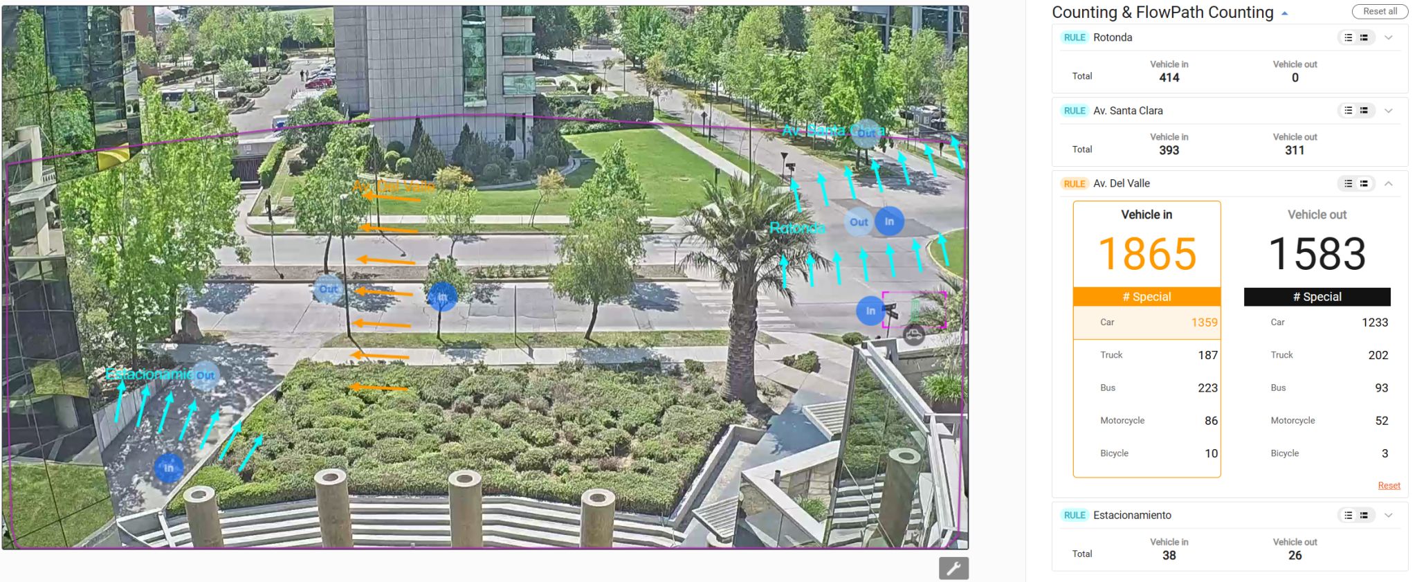 Ya tenemos disponible nuestro modulo para el conteo de vehículos en nuestra plataforma IKCount. Ocupación vehicular en estacionamientos, flujo vehicular por periodos de tiempo, etc. Todo esto gracias los avanzados algoritmos que nos proporciona la cámara IB9365-EHTV-V2 de VIVOTEK, la que permite realizar varias mediciones en la misma imagen a través de diferentes reglas de conteo. La cámara nos permite clasificar los vehículos en 5 categorías: Autos, Camiones, Buses, Motos y Bicicletas.