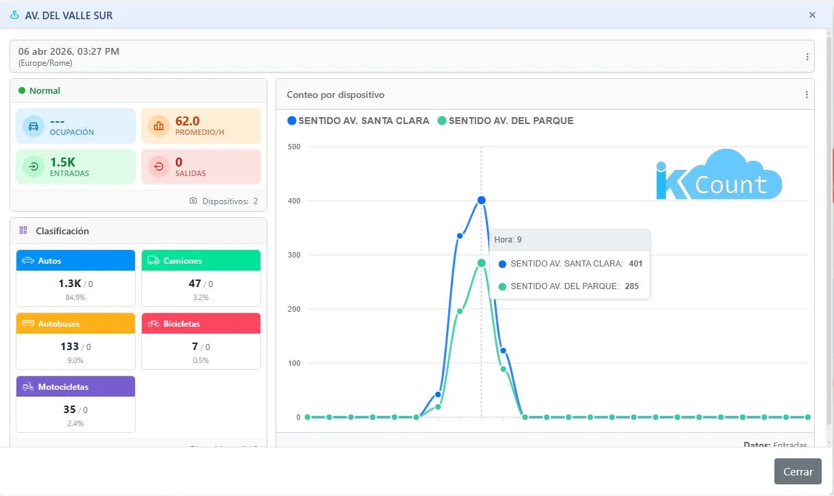 IKCount se integra con Genetec Security Center a través de su Web SDK, enviando alertas de ocupación y generando marcadores de evento para su registro y auditoría. Además, ofrece vistas Web embebibles que permiten a los operadores supervisar en Security Desk, de forma continua, el conteo de personas o vehículos.
