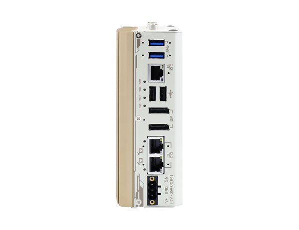 Además del aumento de rendimiento, POC-400 presenta un diseño ultracompacto que mide solo 56 x 108 x 153 mm, que puede caber fácilmente en espacios restringidos. El sistema viene con un chasis de montaje en riel DIN y una gran cantidad de interfaces de E/S de acceso frontal. Con tres puertos Ethernet 2.5GBASE-T con capacidad IEEE 802.3 PoE+, proporcionan un mayor ancho de banda de datos para dispositivos como cámaras NBASE-T y son compatibles con versiones anteriores de Ethernet de 1000/100/10 Mbps. También tiene dos puertos 4K DisplayPort, 2x USB3.1 Gen1, 2x USB 2.0 y COM para aplicaciones industriales generales.