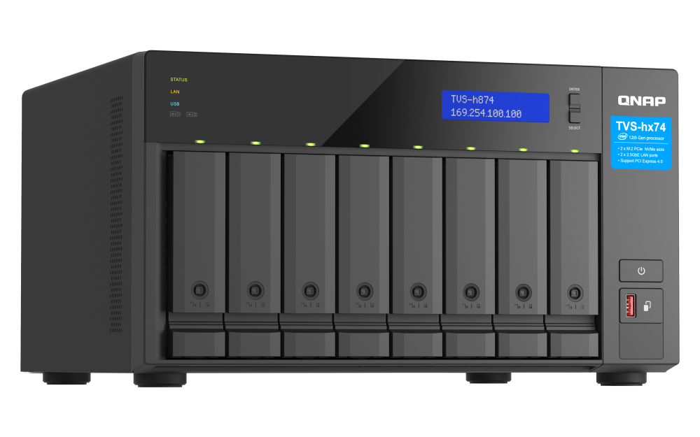 Con un procesador Intel® Core™ i5 de seis núcleos compatible con el sistema operativo QuTS hero basado en ZFS, el TVS-h874 SMB NAS garantiza la integridad de los datos y admite la deduplicación de datos en línea a nivel de bloque y compresión, instantáneas casi ilimitadas, SnapSync en tiempo real y optimización de SSD. Ya se trate de servidores de archivos de misión crítica, servidores de virtualización, edición de vídeo colaborativa o eficaces aplicaciones de copia de seguridad y recuperación de datos, el TVS-h874 ofrece una solución NAS ideal. El TVS-h874 de alto rendimiento proporciona capacidad de ampliación PCIe Gen 4 (hasta el doble de la velocidad de transmisión de Gen 3), almacenamiento en caché para SSD M.2 NVMe y conectividad de 2,5 GbE/10GbE para entornos de red de virtualización de alta velocidad.