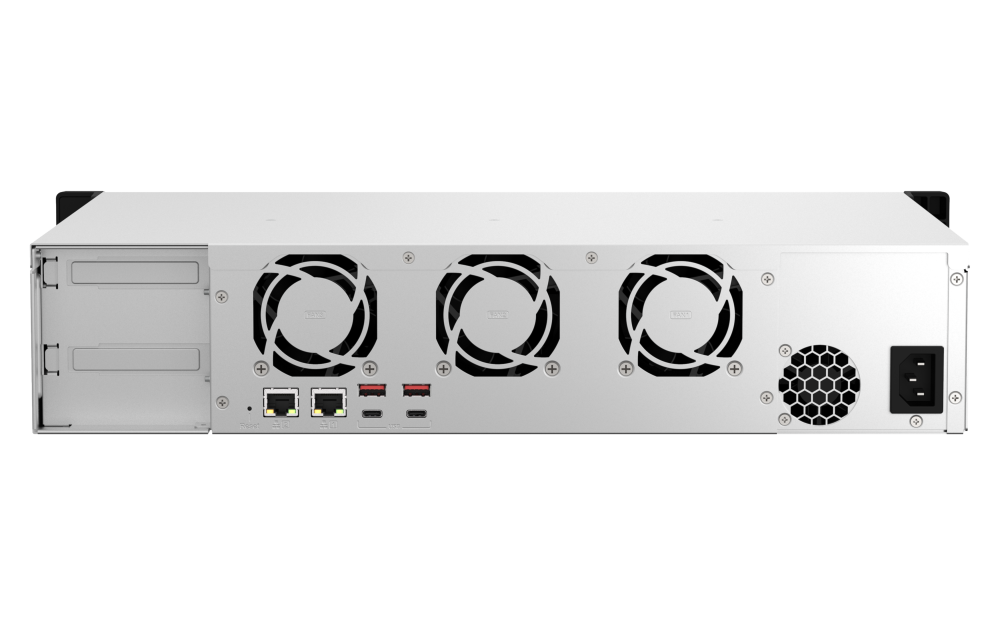 El TS-873AeU compacto de montaje en rack de 2U combina un procesador AMD Ryzen™ V1000 serie V1500B de cuatro núcleos/ocho subprocesos a 2,2 GHz y doble conectividad 2,5GbE en un chasis. En comparación con la generación anterior, el TS-873AeU se ha mejorado con dos puertos M.2 PCIe Gen3 x 1 para caché SSD NVMe o reconocimiento de imágenes con motor equipado con IA y Edge TPU. El hardware de última generación integrado con completas soluciones de software hace que el TS-873AeU sea la opción principal para hacer frente a aplicaciones y tareas que requieren muchos recursos, como máquinas virtuales o acceso intensivo de múltiples usuarios. El diseño compacto y de poca profundidad facilita la instalación en armarios multimedia pequeños o en lugares con una gran cantidad de cableado.