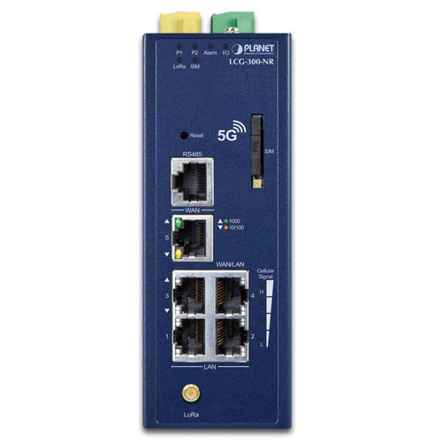 PLANET LCG-300-NR es un gateway celular LoRaWAN 5G NR de grado industrial con conectividad confiable para implementaciones de IoT. Puede proporcionar acceso de banda ancha ultrarrápido con la red celular 5G.