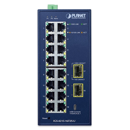 Diseñado para ser instalado en entornos industriales exigentes pesados, el IGS-4215-16T2S / IGS-4215-16T2S-U es el nuevo miembro de la familia de conmutadores Gigabit administrados de tipo L2/L4 de carril DIN de grado industrial de PLANET para mejorar la disponibilidad de aplicaciones comerciales críticas. Proporciona administración de pila dual IPv6/IPv4 y motor de conmutación Gigabit L2/L4 incorporado junto con 16 puertos 10/100/1000BASE-T y 2 ranuras de fibra SFP 100/1000BASE-X adicionales para enlace ascendente de datos y video. El IGS-4215-16T2S / IGS-4215-16T2S-U es capaz de funcionar de forma fiable, estable y silenciosa en cualquier entorno endurecido sin afectar a su rendimiento. Viene con una temperatura de funcionamiento que oscila entre -40 y 75 grados C en una carcasa metálica resistente IP30.