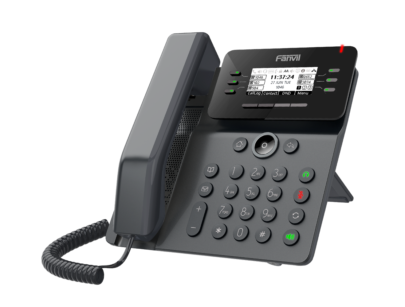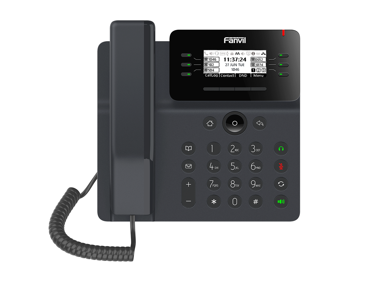 El V62 es más que un teléfono eficiente, es una delicada obra de arte, que proporciona una experiencia de comunicación empresarial inteligente y fluida para las empresas. Como el teléfono de negocios esencial con una pantalla gráfica de matriz de puntos con retroiluminación y las funciones VoIP necesarias y otras características extendidas, V62 es una excelente combinación de elegante exterior y potente interior.